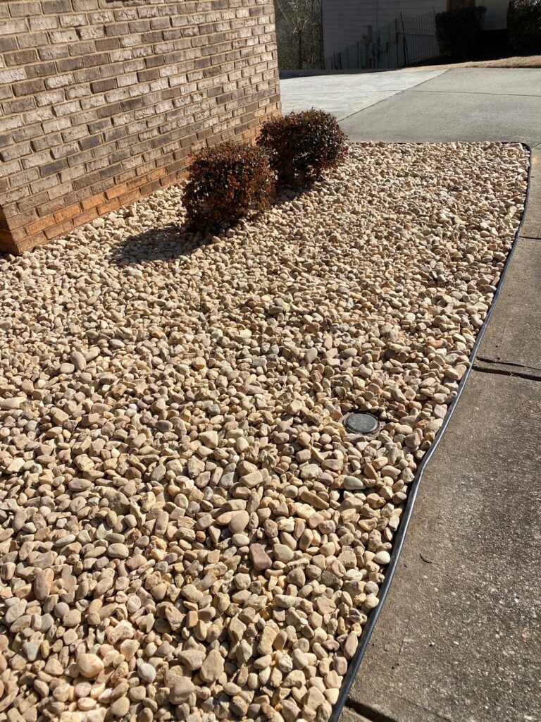 Our work Gallery Our Recent Landscaping Projects LAWN MAINTENANCEMULCHPRUNINGSON INSTALLATIONRIVER ROCKFLOWERS INSTALLATIONTOTAL YARD CLEAN-UPPINE STRAWTREE SERVICESRETAINING WALLSTREE PLANTINGDRAIN INSTALLATIONGUTTER CLEANINGSOD INSTALLATIONBERMUDA SOD INSTALLATIONBEFORE AND AFTER RIVER ROCKS INSTALLATION Do you have any question?Feel free to contact us anytime. (678) 689-9498